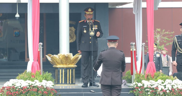 Upacara dipimpin oleh Kapolda Jawa Timur Irjen Pol Drs. Nanang Avianto, M.Si., dan diikuti oleh Pejabat Utama Polda Jatim, personel Polri, ASN, serta peserta upacara lainnya.