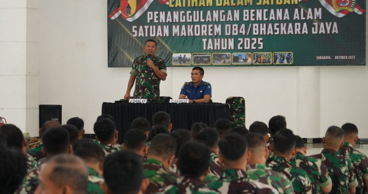 SURABAYA – Korem 084/Bhaskara Jaya menggelar Latihan Dasar Satuan Penanggulangan Bencana Alam Tahun 2025 di Lapangan Makorem 084/Bhaskara Jaya, Jl. Ahmad Yani No. 1, Surabaya, pada Selasa (04/11/2025). Latihan ini bertujuan meningkatkan kemampuan prajurit dalam menghadapi potensi bencana alam, khususnya kebakaran di perkotaan.