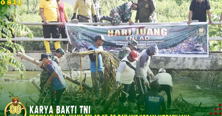 TUBAN, - Guna mengantisipasi datangnya hujan yang selalu menggenangi saluran air, di samping untuk menjalin silaturahmi antara Babinsa dengan masyarakat di desa binaan, Babinsa Koramil 0811/02 Palang karya bakti bersama Polri dan warga dalam pembersihan saluran air dalam rangka memperingati hari Juang TNI AD Ke-80 dan HUT Kodam V/Brawijaya Ke-77 tahun 2025 di Desa Palang, Kecamatan Palang, Kabupaten Tuban. Jum'at, (12/12/2025).
